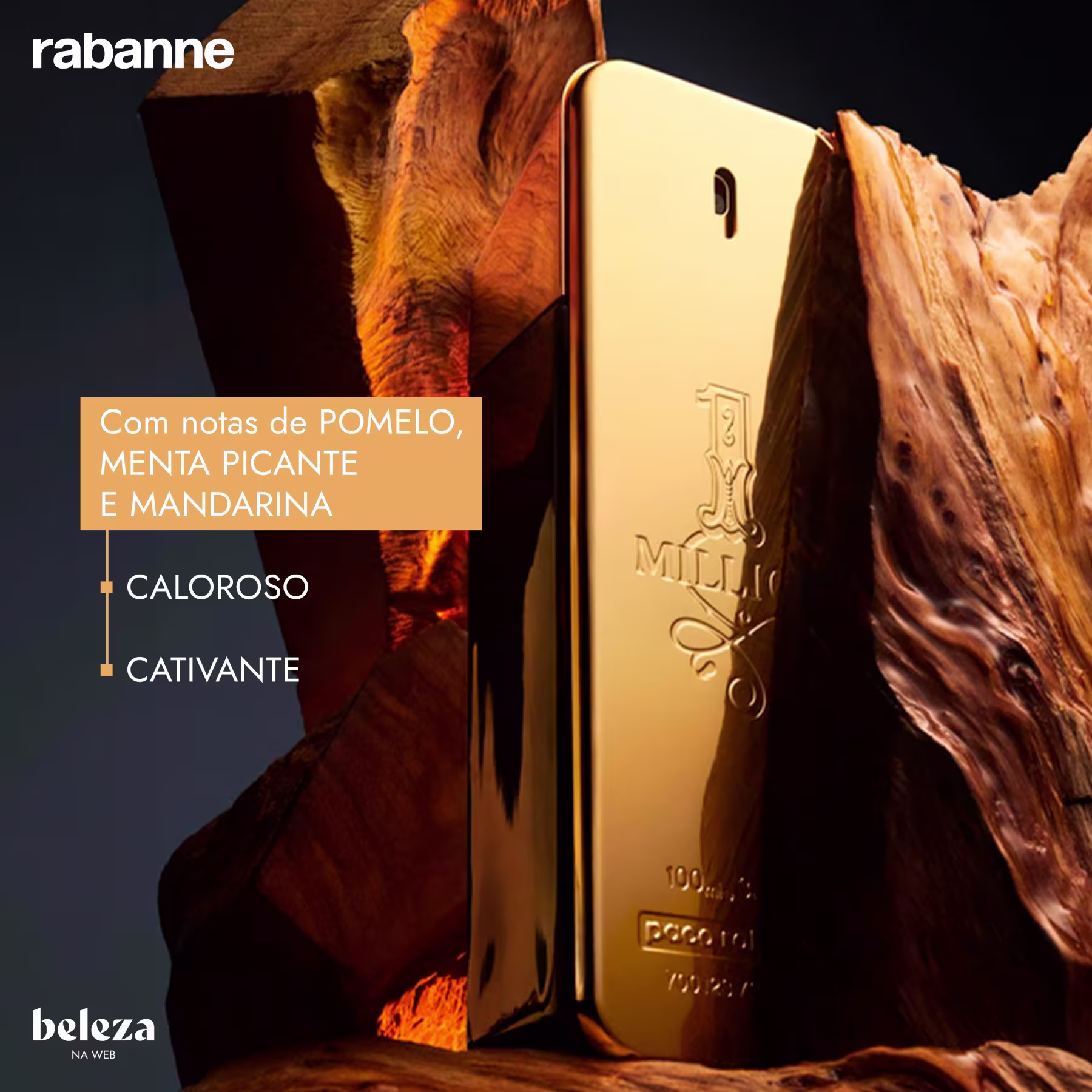 O Perfume 1 Million Rabanne oferece uma jornada olfativa incomparável. As notas de topo do perfume One Million explodem com a vibrante combinação de Pomelo, Menta Picante e Mandarina, despertando os sentidos. No coração de One Million, a Rosa, a Canela e os Especiarias se entrelaçam, revelando um aroma quente e sensual. E para finalizar a composição de Paco Rabanne 1 Million, a fragrância traz notas de fundo de Couro Aveludado, Madeira Branca, Âmbar e Patchouli da Indonésia que, juntas, criam uma base amadeirada e aveludada que permanece na pele.