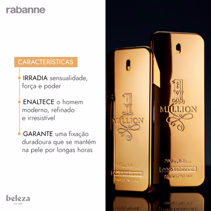 Com sua popularidade incontestável, Rabanne 1 Million se tornou um best-seller da perfumaria masculina, disponível nas versões de 30ml, 50ml, 100ml e 200ml.