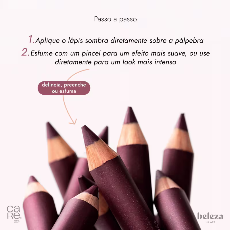 Lápis Sombra CARE Natural Beauty Vanessa Rozan, pigmentada, acabamento acetinado, textura cremosa. Melhores makes de CARE Natural Beauty na BLZ. Ver mais ❯