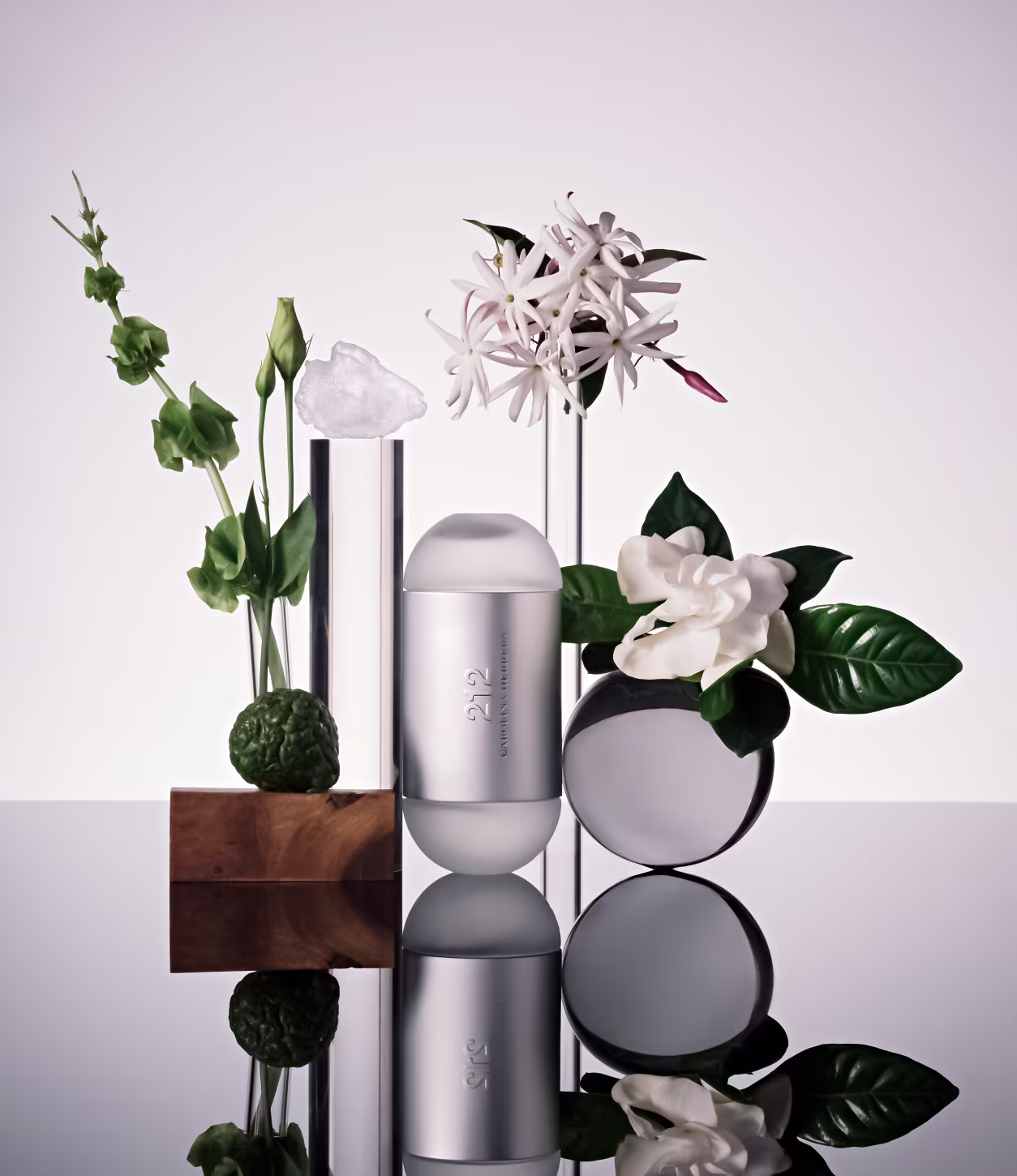 Carolina Herrera 212 traz notas de topo de Flor-de-Laranjeira, Mandarina, Cacto e Bergamota. No corpo, conta com notas florais de Camélia Branca, Lírio, Gardênia, Peônia, Jasmim, Rosa, Lírio-do-Vale e Frésia. E fecha com notas de fundo de Sândalo e Almíscar. Seu frasco inovador reflete o século 21. Feito de vidro e metal fosco, é trendy e quase arquitetônico.