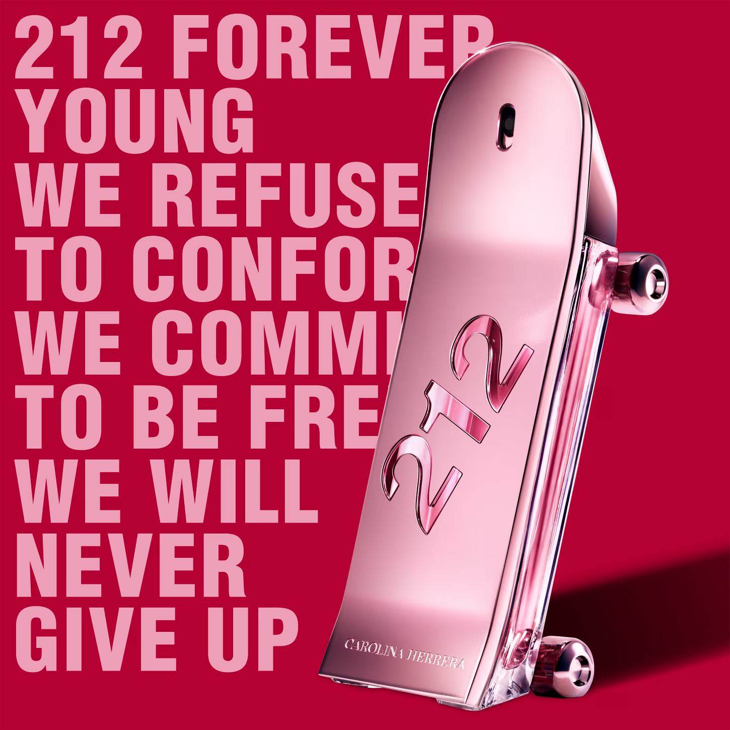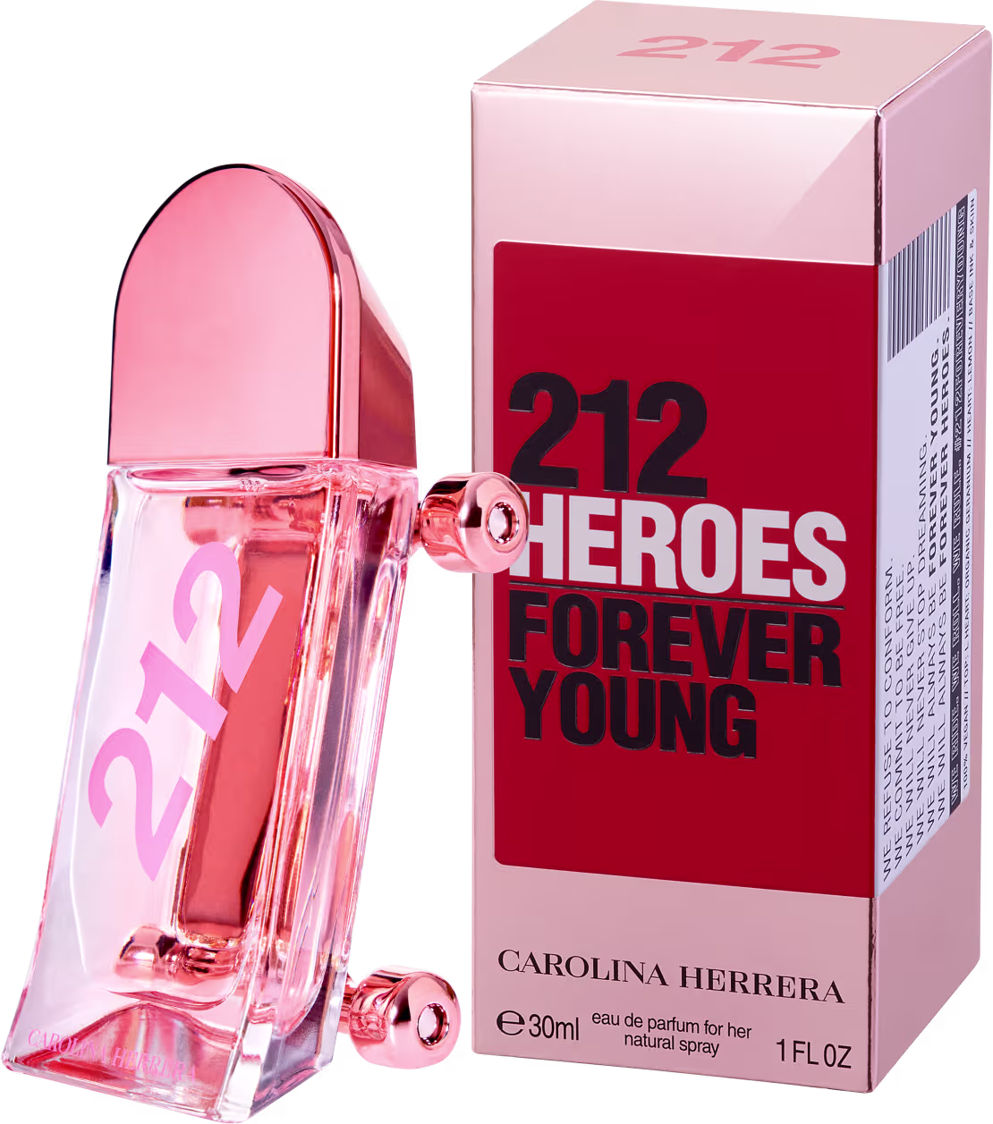 - ▸O perfume 212 heroes for her representa a juventude sem limites, a autenticidade e a liberdade feminina.