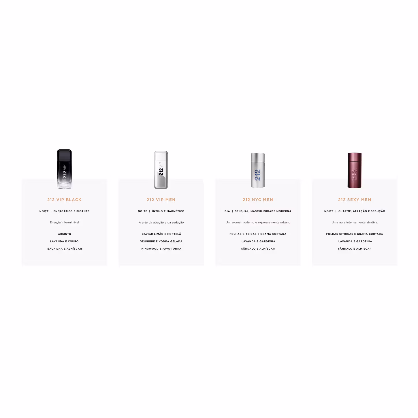 O Perfume 212 Men NYC, de Carolina Herrera, traz uma fragrância vibrante, que transmite de forma única a sofisticação, seriedade e elegância do homem da atualidade.