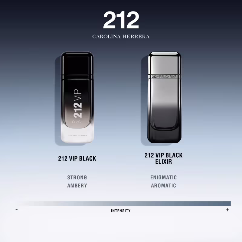 212 VIP Black Elixir é um perfume importado Carolina Herrera masculino âmbar. É uma versão mais intensa e concentrada de 212 VIP Black, envolto em um frasco preto moderno.