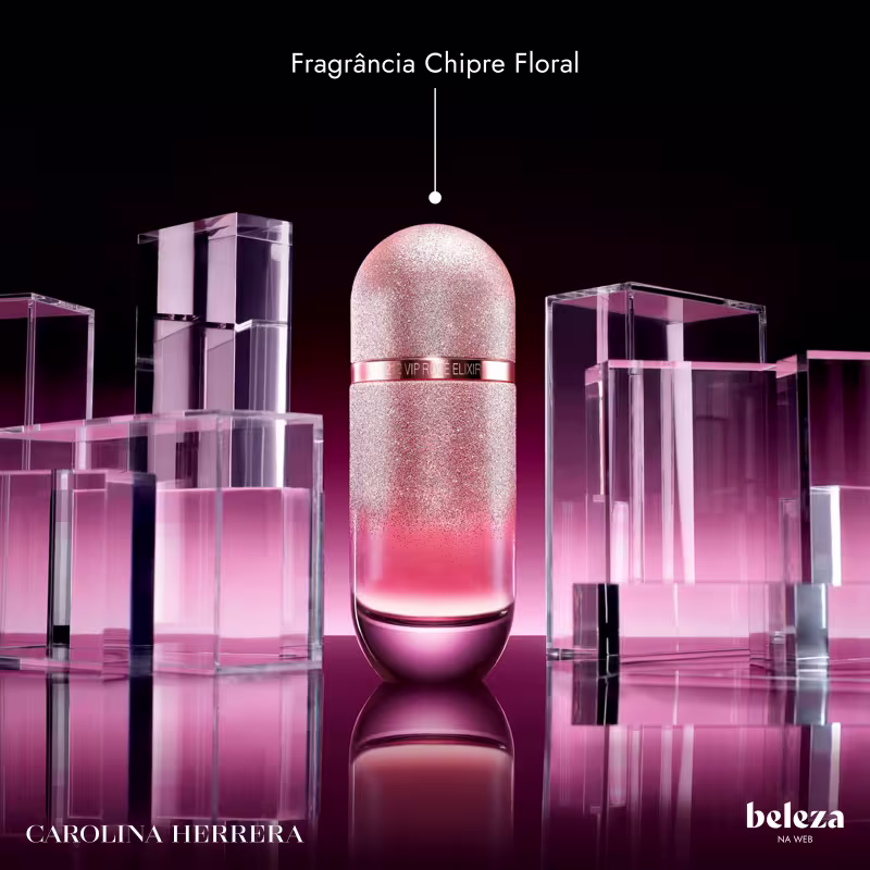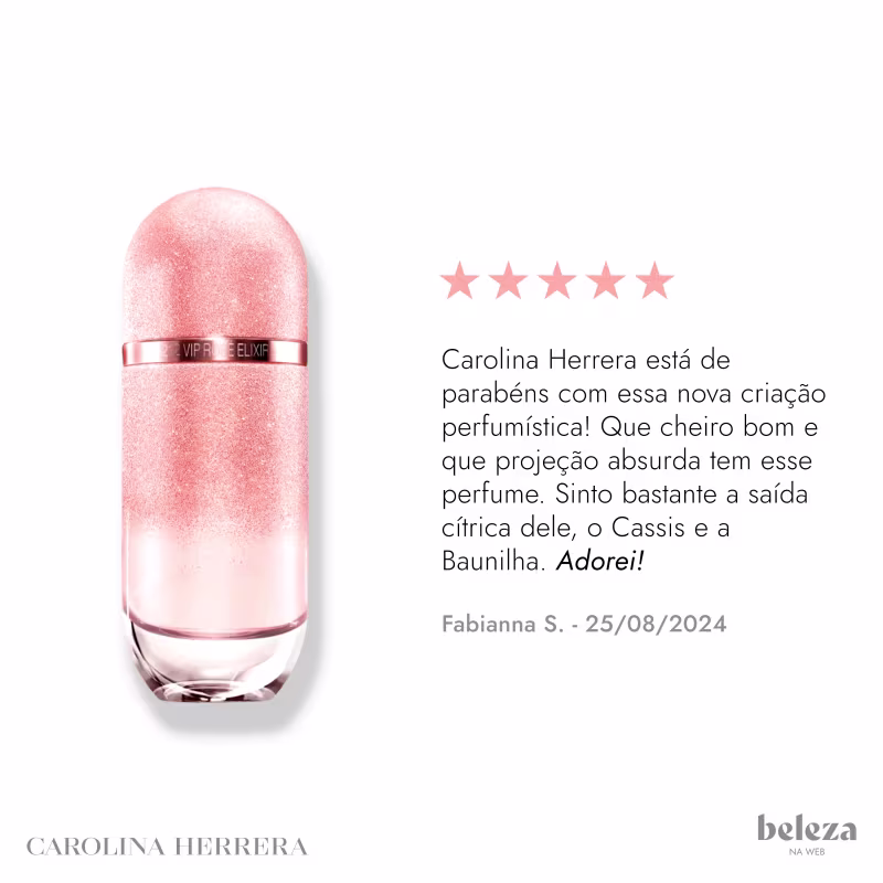 O Perfume 212 VIP Rosé Elixir, de Carolina Herrera, traz uma mistura energética de notas amadeiradas, cítricas e florais, é um perfume fiel ao perfil jovem e vivaz definido pela linha 212 VIP.