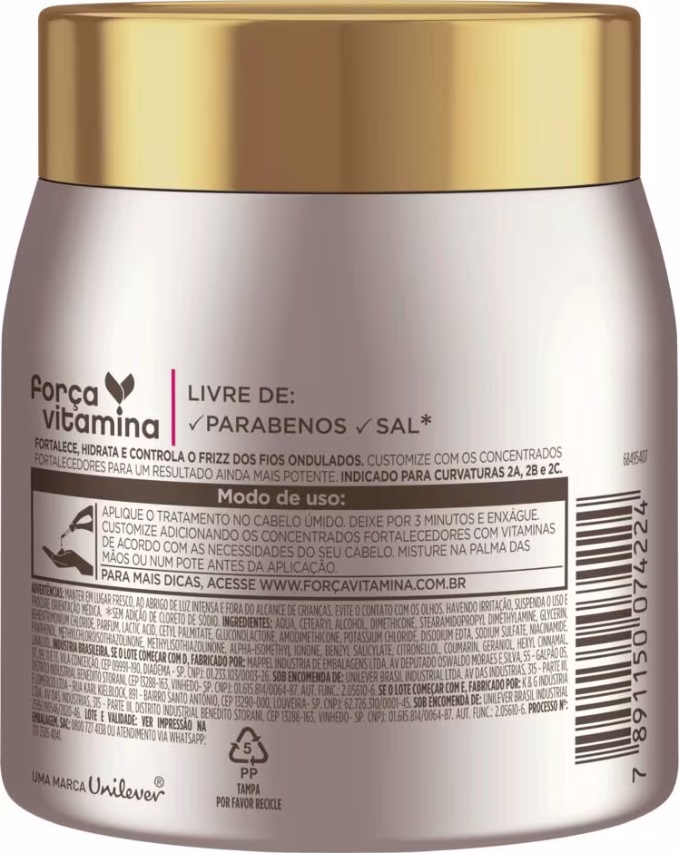 • Para um resultado ainda mais potente, customize o tratamento adicionando os Concentrados Fortalecedores com Vitaminas de acordo com as necessidades do seu cabelo.
