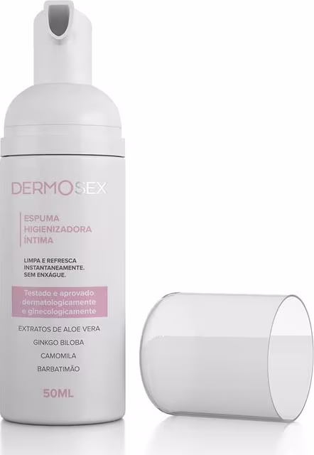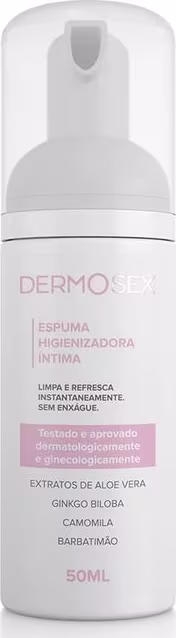 Espuma higienizadora íntima. A Sós Dermosex é a opção ideal para fazer a limpeza íntima de maneira rápida e sem a necessidade de água, tendo ação suave e refrescante.