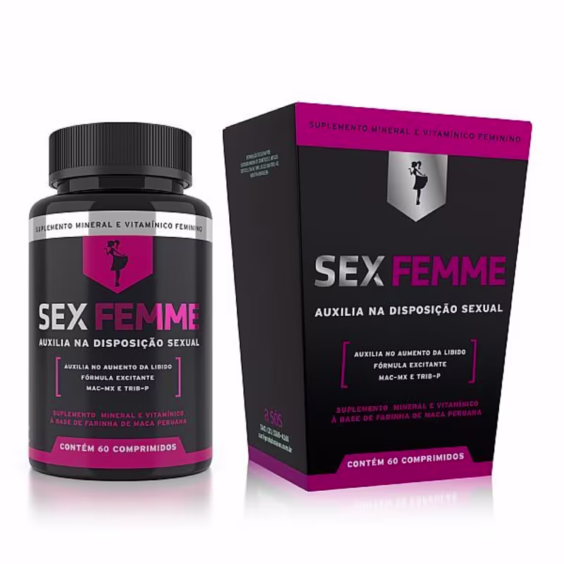 Suplemento alimentar feminino. A Sós Sex Femme aumenta a libido e o desejo sexual, melhorando consideravelmente o humor. Ajuda na redução na fatiga diária e no cansaço físico e mental, além de aliviar os sintomas da TPM e da menopausa, como stress e depressão. É uma excelente alternativa para quem não querer fazer reposição hormonal. Também é um rejuvenescedor natural, por conter propriedades antioxidantes que ajudam a manter a pele e as células jovens e saudáveis.