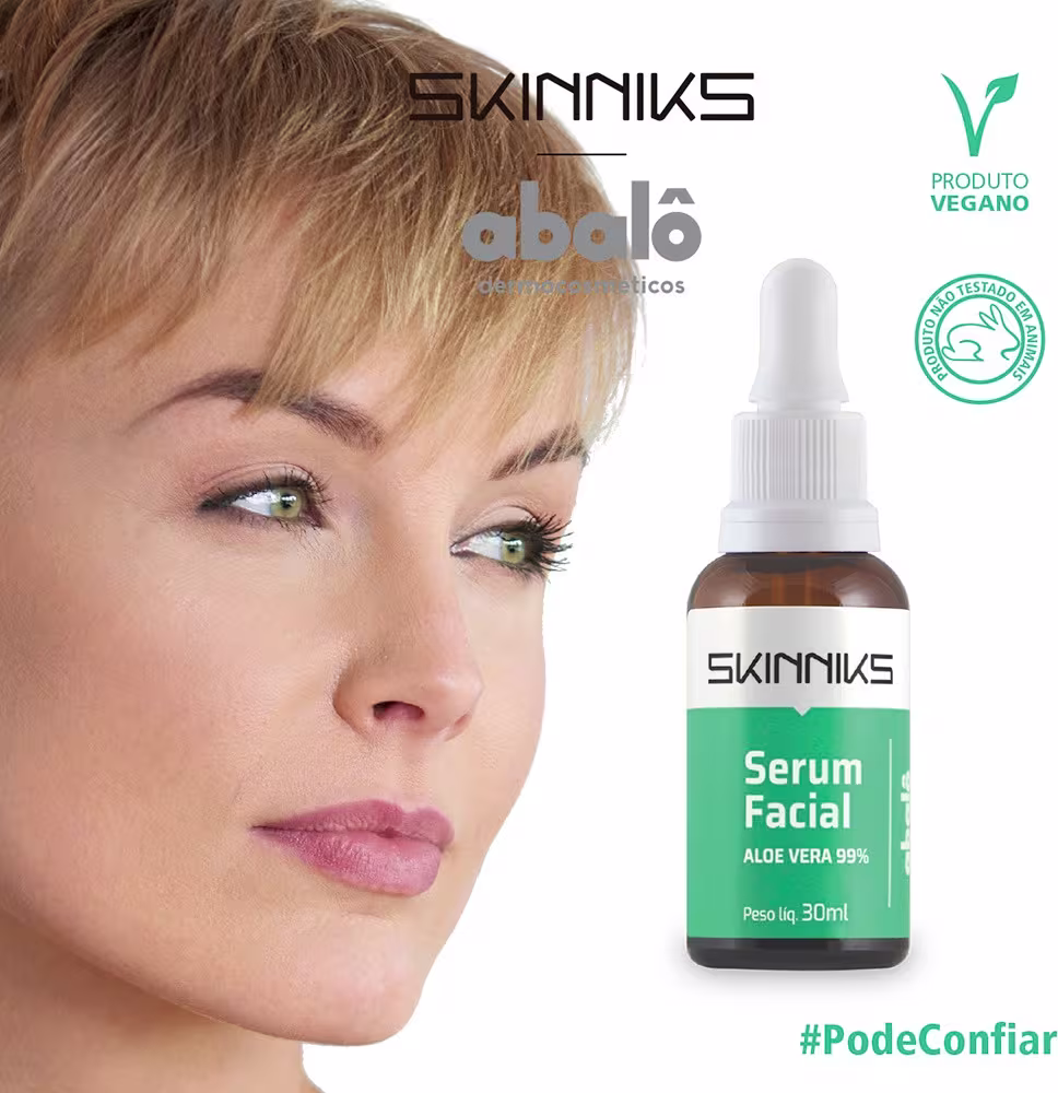 Sérum Facial Abalô Skinniks Aloe Vera, que possui textura em gel e atua contra o envelhecimento precoce. Melhores Séruns Faciais Abalô na BLZ. Ver mais ❯