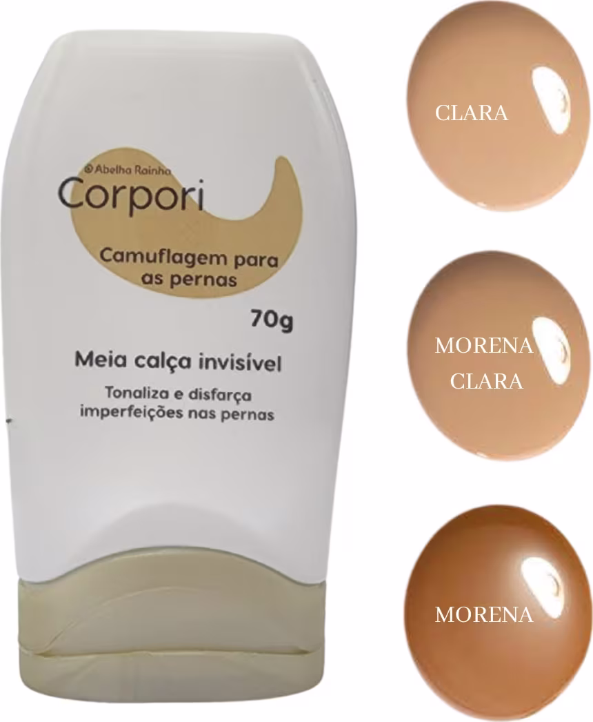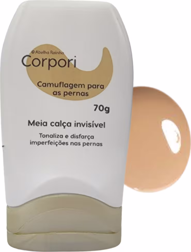 Maquiagem para as pernas. Abelha Rainha Corpori camufla pequenas imperfeições na pele e garante toque seco sem manchar a roupa.