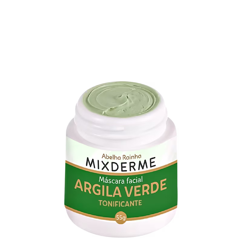 Máscara facial para todos os tipos de pele. Abelha Rainha Mixderme Argila Verde auxilia na limpeza, tonifica e hidrata a pele.
