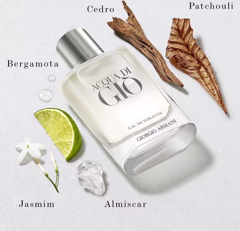 Inspirado na energia do mar, este perfume icônico traduz a masculinidade em sua forma mais pura. Sua composição aquática e cítrica abre com a luminosidade da bergamota da Calábria e da tangerina verde, evoluindo para um coração aromático com notas de jasmim e a profundidade do patchouli da Indonésia. A fragrância de Acqua di Giò, de Giorgio Armani, foi pensada para o homem que não tem medo de encarar o horizonte. O resultado é uma assinatura olfativa atemporal e inesquecível, que projeta um frescor marinho amadeirado, perfeito para quem aprecia a sofisticação sem esforço e vive a vida com paixão e liberdade.