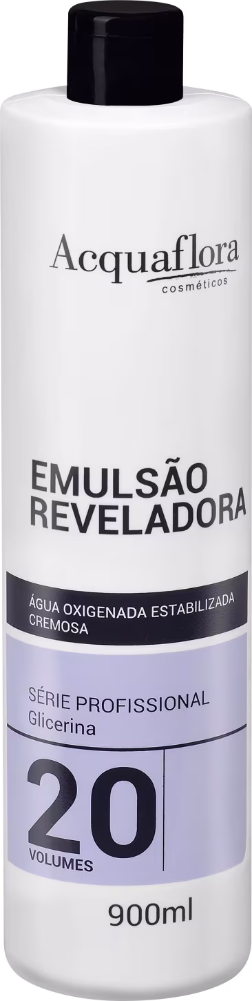 A Emulsão Reveladora Acquaflora 20 Volumes apresenta uma textura cremosa para a água oxigenada, para promover a alteração de cor desejada do cabelo, com fórmula enriquecida com glicerina, para proporcionar condicionamento após a aplicação.