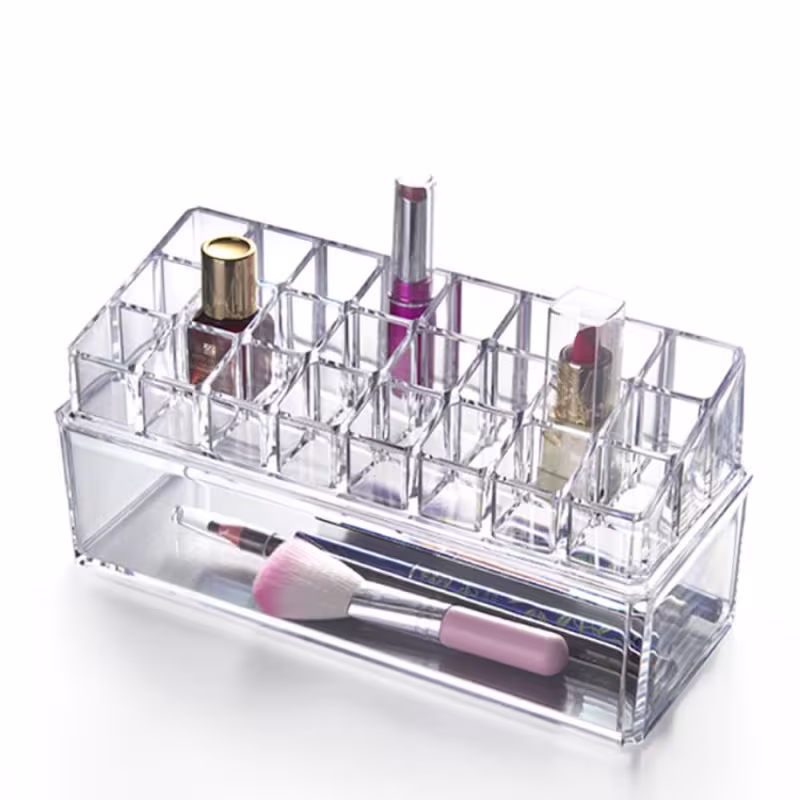 Caixa organizadora com porta batom. Acrílico Store é ideal para guardar diversos itens, Batons, pincéis e esponjas.