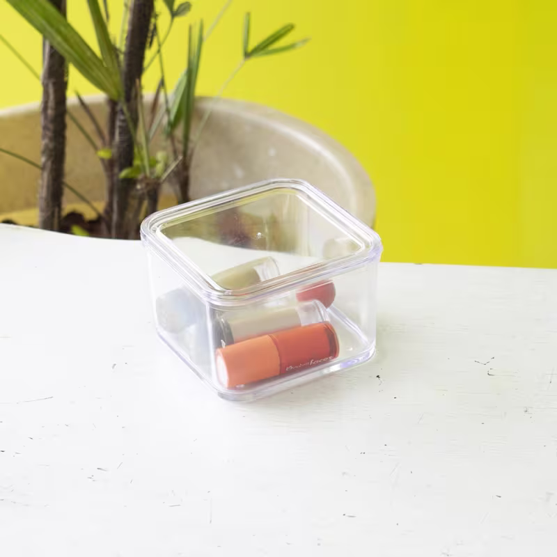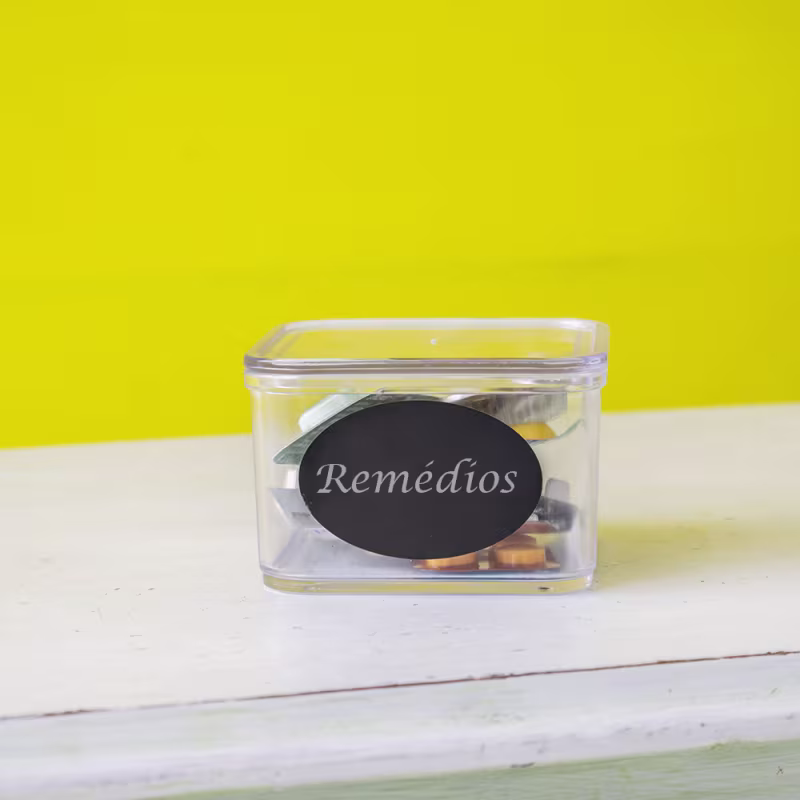 A Caixa de Acrílico Multiuso Acrílico Store com Adesivo de Identificação conta com um design moderno e minimalista para guardar joias, maquiagem, remédios, condimentos, acessórios ou qualquer outro item.
