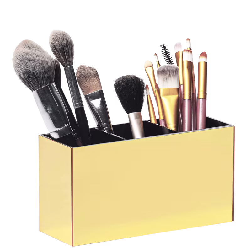 Não sei o CEPPorta pincel. O Acrílico Store com 3 Divisórias além de organizar seus itens, agrega beleza a decoração com o charme do acrílico espelhado.