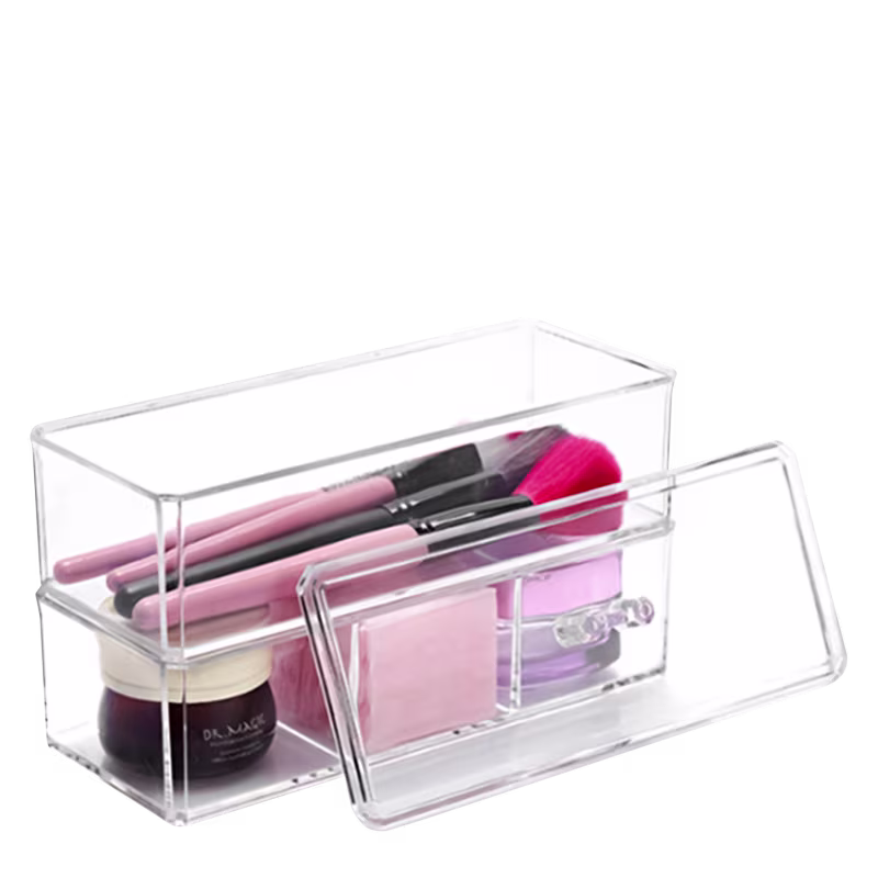 Acrilico Store permite alternar as formas de encaixe conforme a sua necessidade. Ótimo para armazenar diversos objetos como: maquiagens, pincéis, algodão, joias e também outros acessórios, pois seu compartimento é amplo e também possui tampa. Use o seu organizador para dar um toque de modernidade ao cômodo da sua casa e facilitar o seu dia.