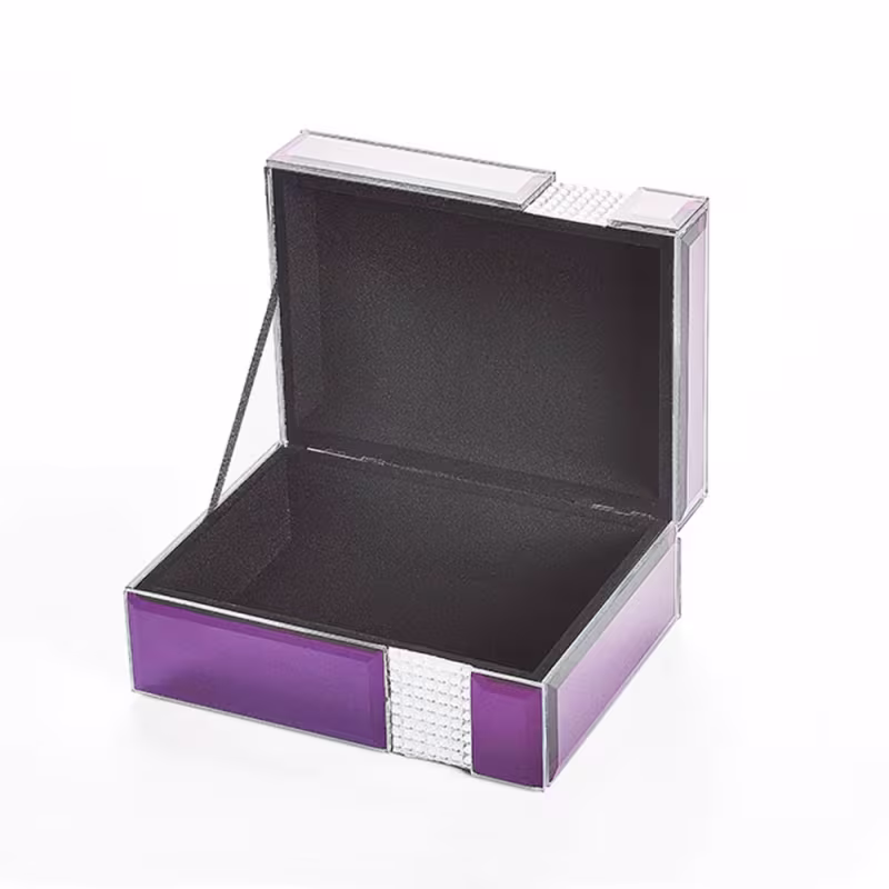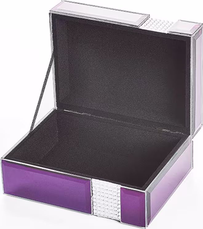 A Caixa para Maquiagem Acrílico Store Shine é uma peça delicada e rica em detalhes, com acabamento com pequenos brilhos de strass prata e uma libélula dourada. Fabricado em vidro, possuí acabamento aveludado na parte interna, ideal para guardar joias delicadas. Ideal para utilizar em penteadeiras, ajudando a organizar e proteger suas joias.