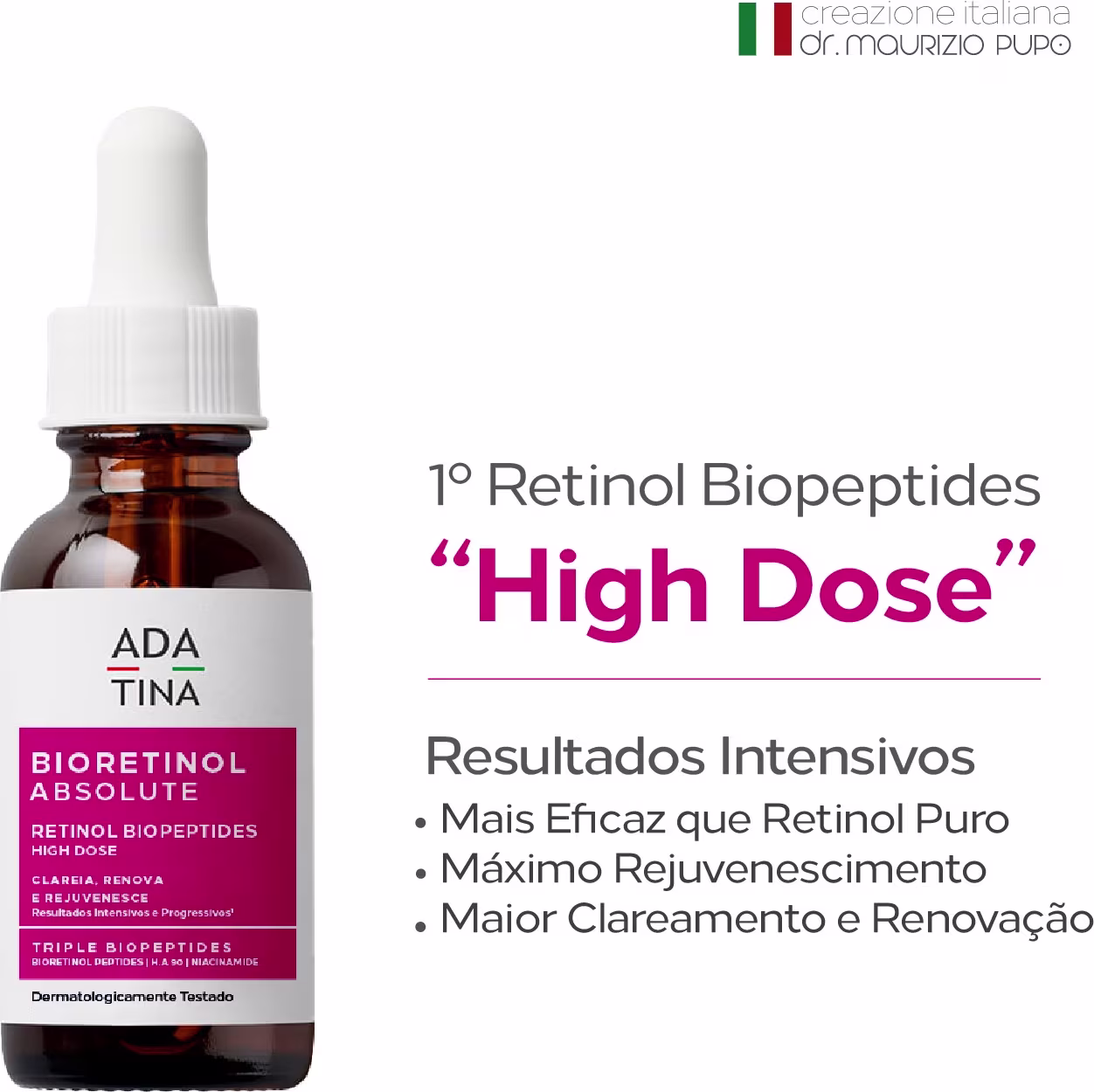 Sérum facial enriquecido com retinol. Ada Tina Bioretinol Absolute revitaliza, rejuvenesce e trata linhas expressivas com textura leve.