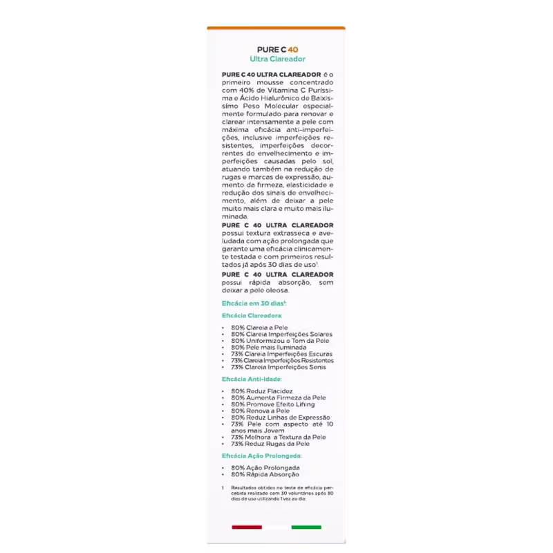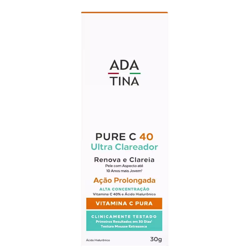 Uniformizador facial. Ada Tina Pure C 40 Ultra uniformiza o tom da pele e age também no rejuvenescimento da cútis, deixando você com uma aparência de até 10 anos mais jovem.
