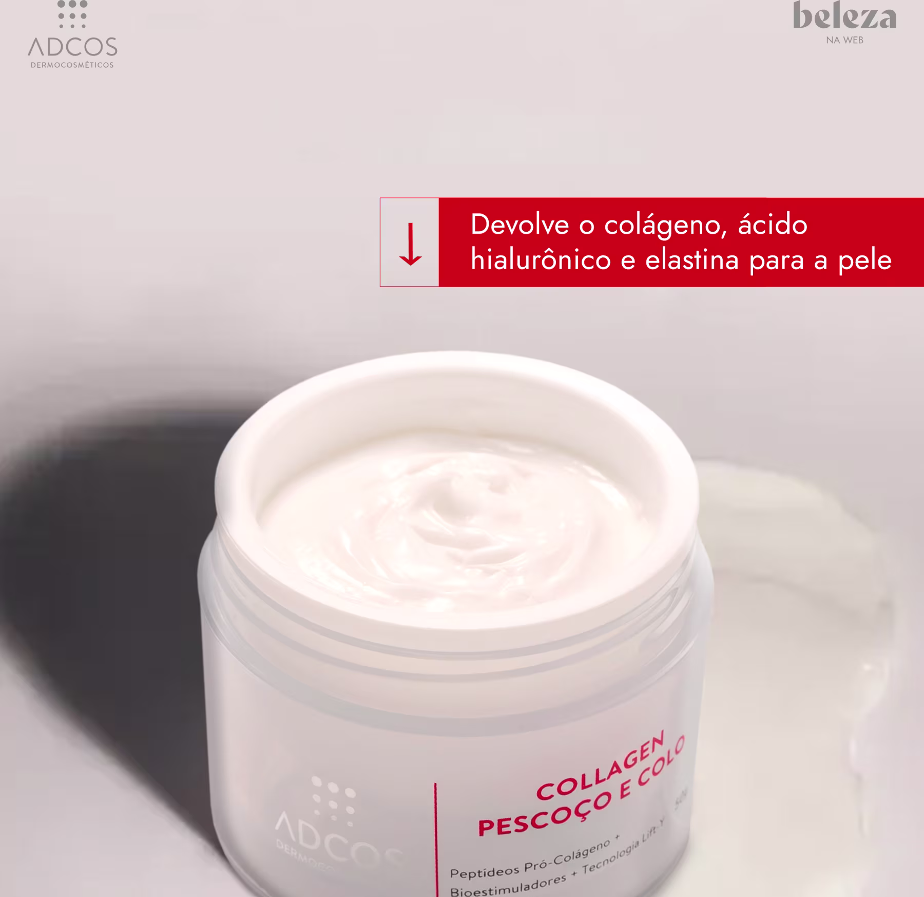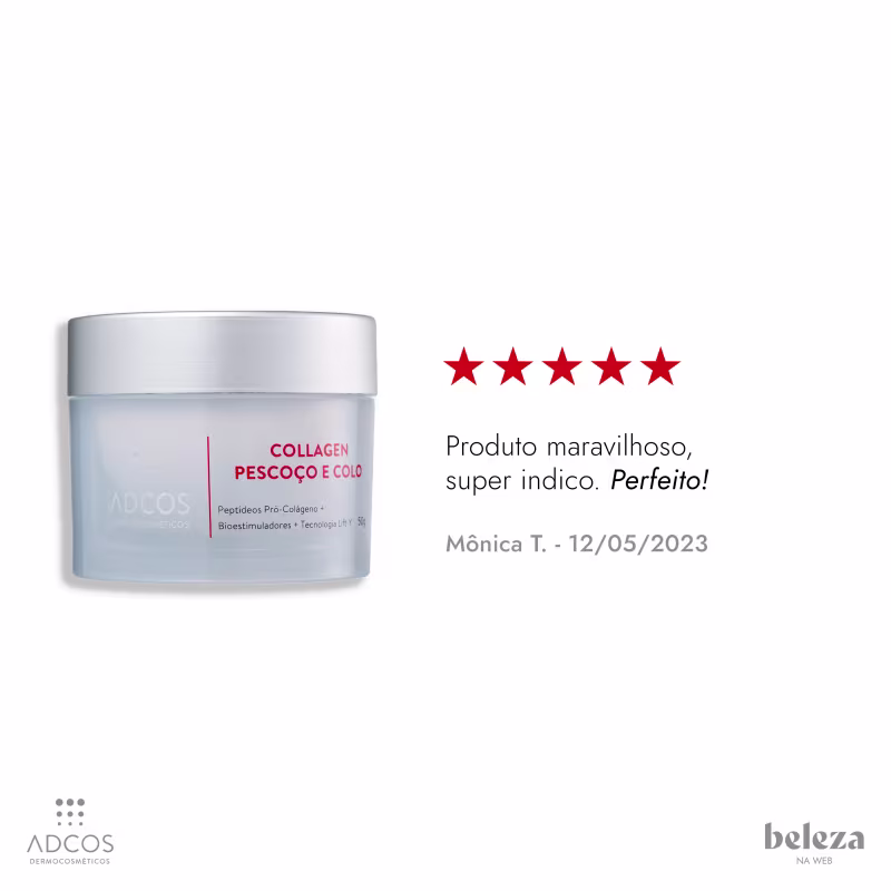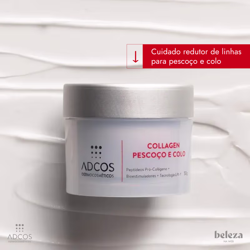 Creme redutor de linhas para o colo e pescoço. Adcos Collagen Colo e Pescoço. Possui ação tensora, antiglicante, além de aumentar a firmeza, deixando a pele mais jovem.