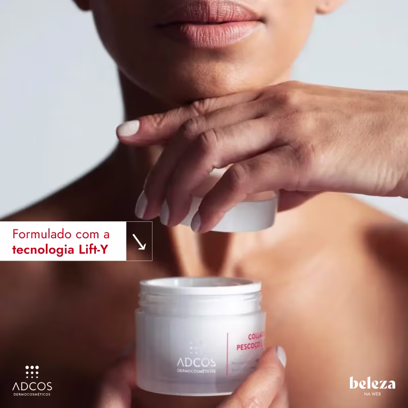 O Creme Antienvelhecimento Adcos Collagen Colo e Pescoço possui fórmula que estimula a produção de colágeno, ácido hialurônico e elastina. Conta com a tecnologia Lift-Y, que melhora a sustentação da zona Y. Proporciona uma pele com linhas e marcas de expressão reduzidas e suavizadas.
