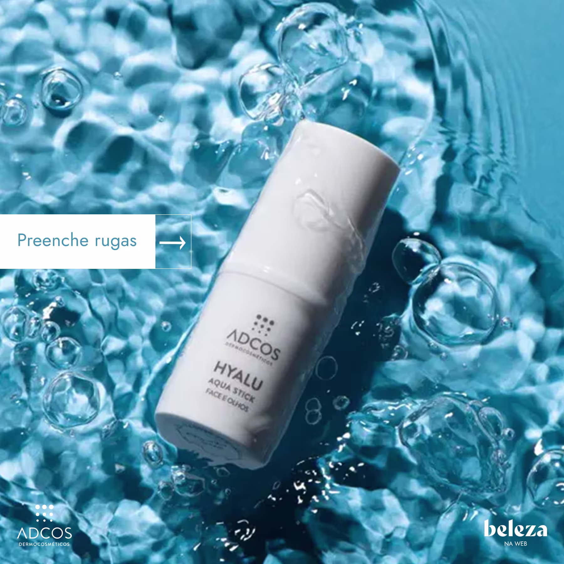 Redutor de Linhas Face e Olhos. Adcos Hyalu Aqua Stick é o primeiro Ácido Hialurônico Stick, que preenche rugas e hidrata a qualquer hora.
