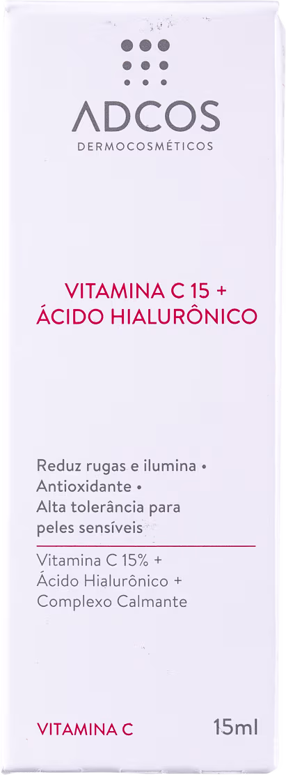 Sérum Redutor de Linhas para peles sensíveis e oleosas. Adcos Vitamina C 15 + Ácido Hialurônico promove maior luminosidade a pele enquanto repara danos e previne contra a ação do fotoenvelhecimento.