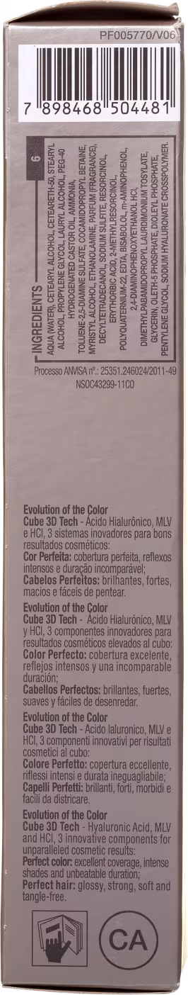 Sua formulação dispõe do Ácido Hialurônico, que tem a função de hidratar e proteger o fio das agressões químicas, propiciando uma coloração segura. Além disso, não contém o PPD, reduzindo riscos de sensibilidade ao couro cabeludo, além do baixo percentual de amônia. Se você busca com cabelo com tom deslumbrante, essa é a opção certa!