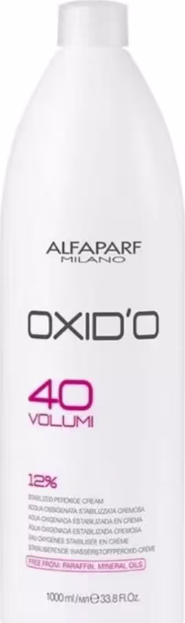 A Água Oxigenada Alfaparf Oxid'o 12% apresenta fórmula estabilizada, cremosa e perfumada, desenvolvida para otimizar as performances da coloração e do pó descolorante.