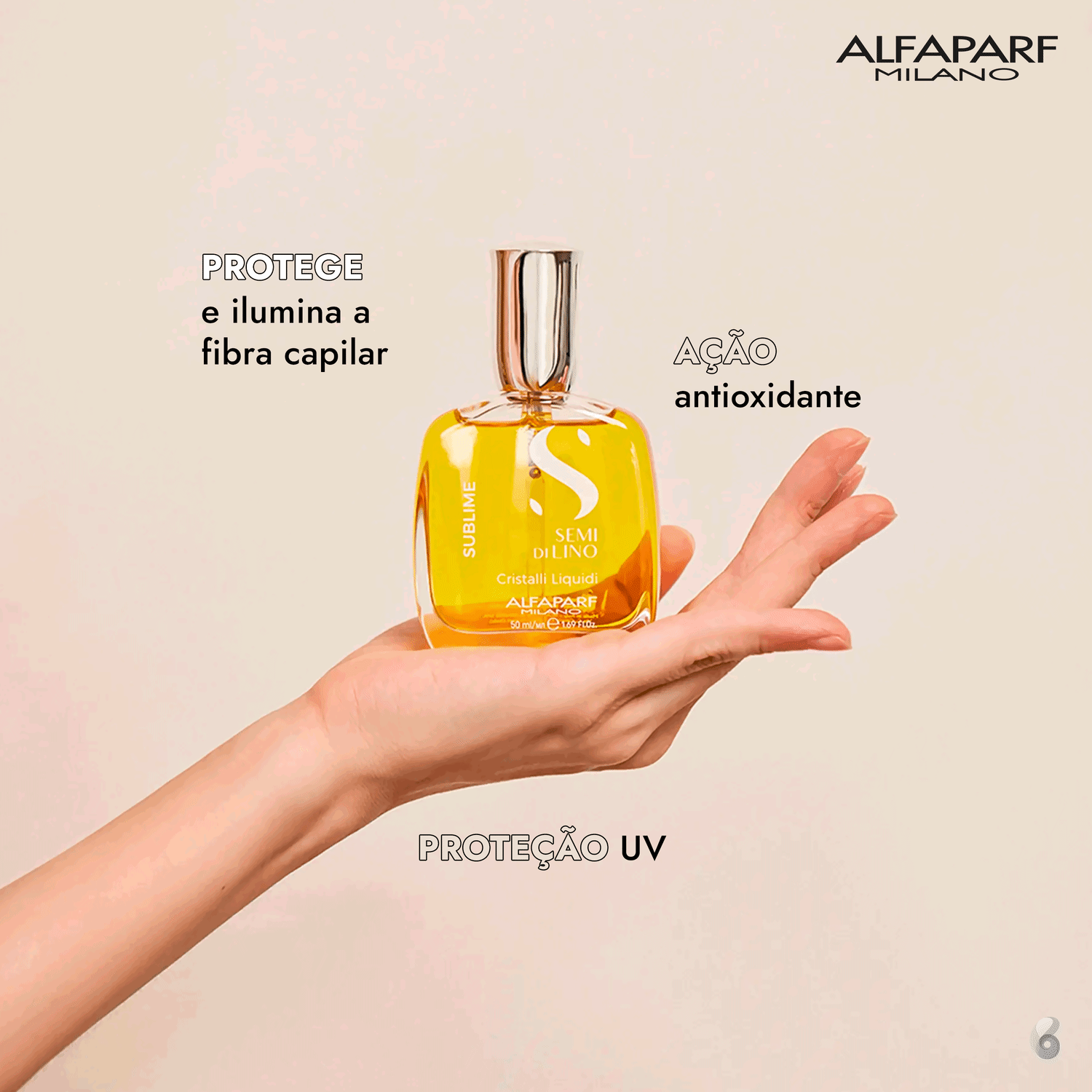 Óleo Alfaparf Semi di Lino Sublime Cristalli Liquidi protege e ilumina com filtro UV e ação antioxidante. Melhores produtos Alfaparf na BLZ. Ver mais ❯