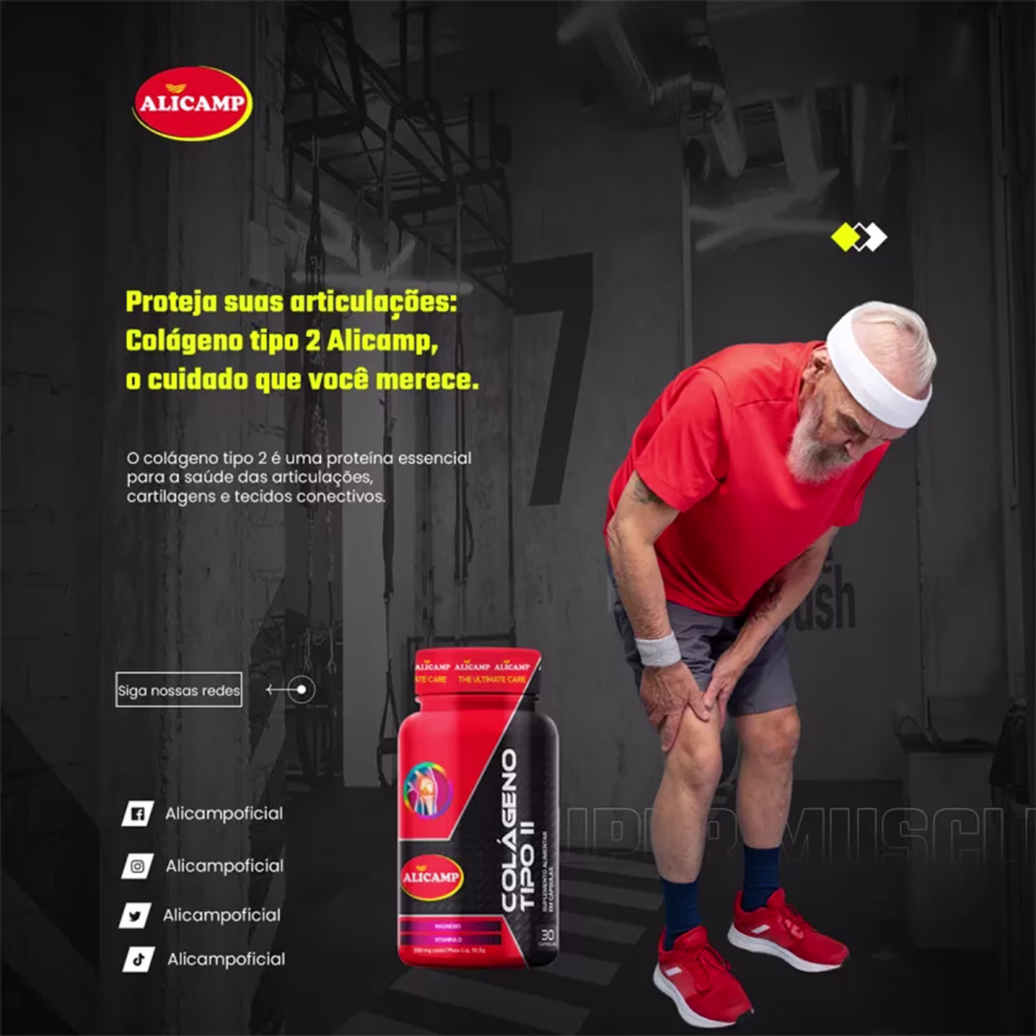 O Suplemento Alimentar Alicamp Colágeno Tipo 2 traz uma fórmula exclusiva projetada para promover a saúde das articulações, auxiliar na regeneração da cartilagem e proporcionar alívio para sintomas de artrite. Com uma textura em cápsulas fáceis de ingerir, oferece benefícios comprovados para pessoas de todas as idades, especialmente aquelas que sofrem de dores articulares, rigidez ou falta de mobilidade. Experimente e se surpreenda!