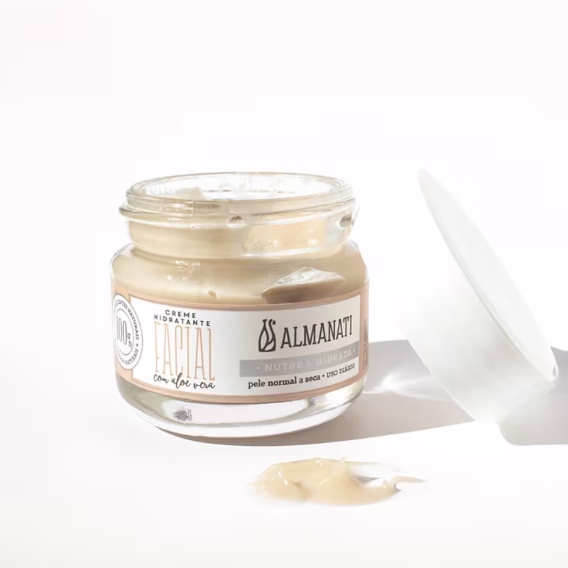 Creme hidratante facial. Almanati Aloe Vera oferece uma hidratação profunda a pele, trazendo proteção e maciez.