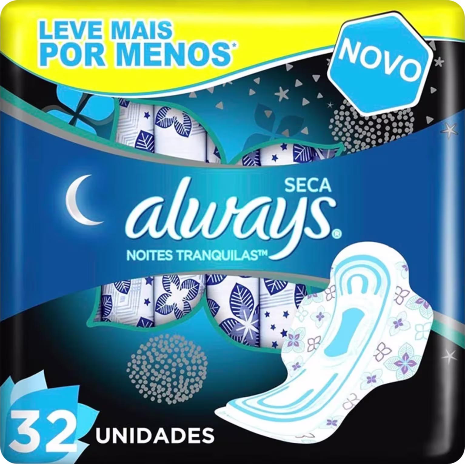 Absorvente com Abas Always Noites Tranquilas Seca: ideal para que você durma tranquila e sem preocupações. Melhores Absorventes da Always na BLZ. Ver mais ❯