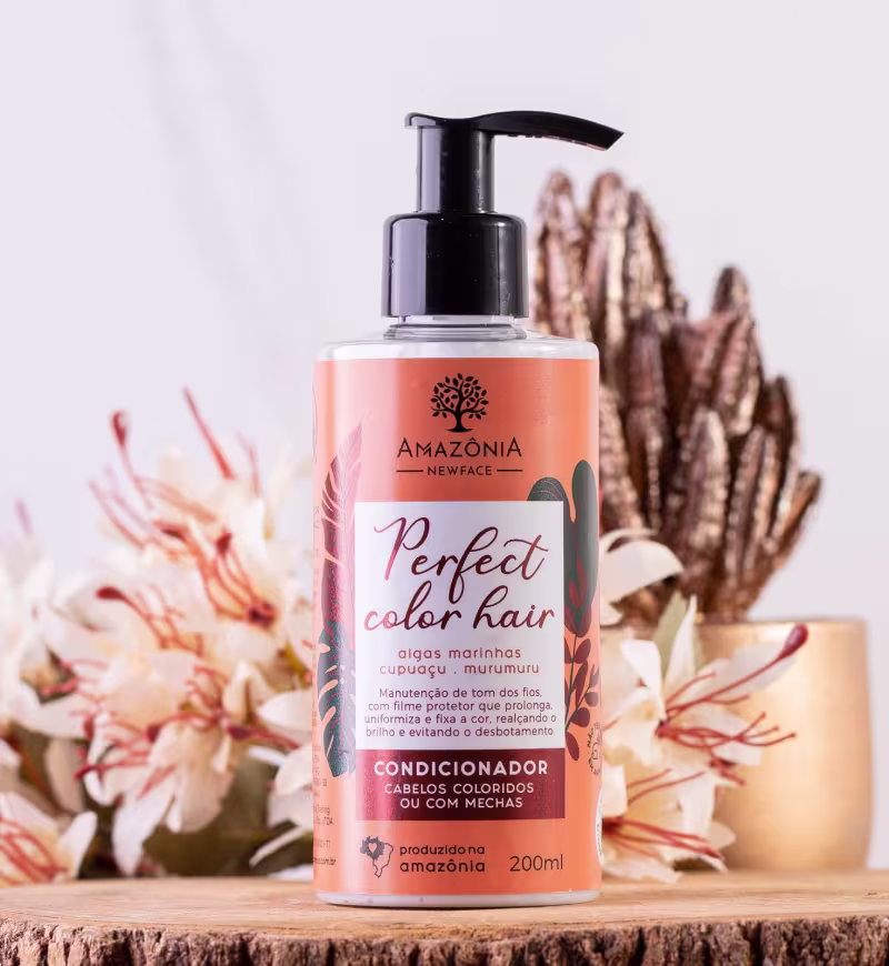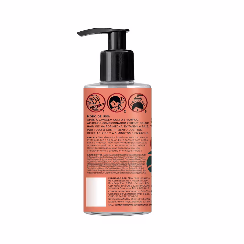 O Shampoo Amazônia New Face Perfect Color Hair possui filme protetor que prolonga a fixação da cor com hidratação e nutrição intensa. Além disso, protege o couro cabeludo e sela as cutículas, deixando as madeixas mais alinhadas, resistentes e brilhantes.