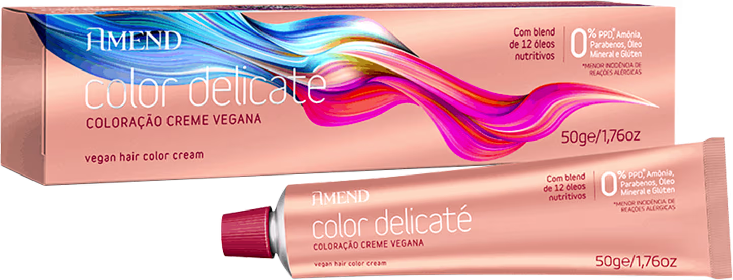 A Coloração Vegana Permanente Amend Color Delicaté garante ultradurabilidade da cor, brilho intenso e excelente cobertura da cor nos fios brancos. Nutre o cabelo e protege contra o ressecamento e o frizz. Fórmula dermatologicamente testada e hipoalergênica.
