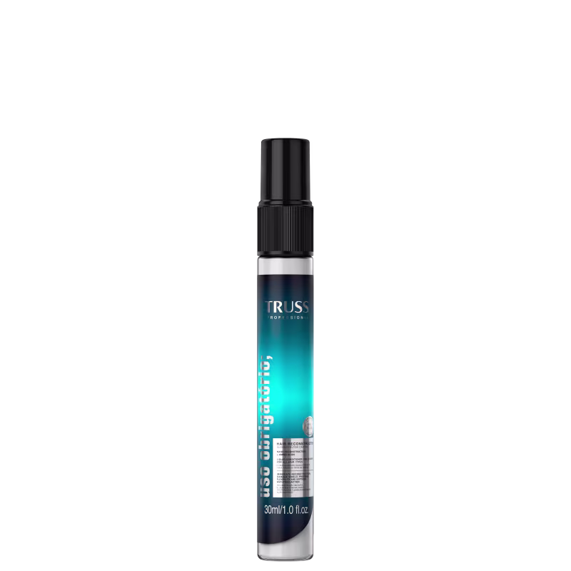 Tratamento líquido reconstrutor. TRUSS Uso Obrigatório penetra profundamente na fibra capilar e promove reconstrução imediata.