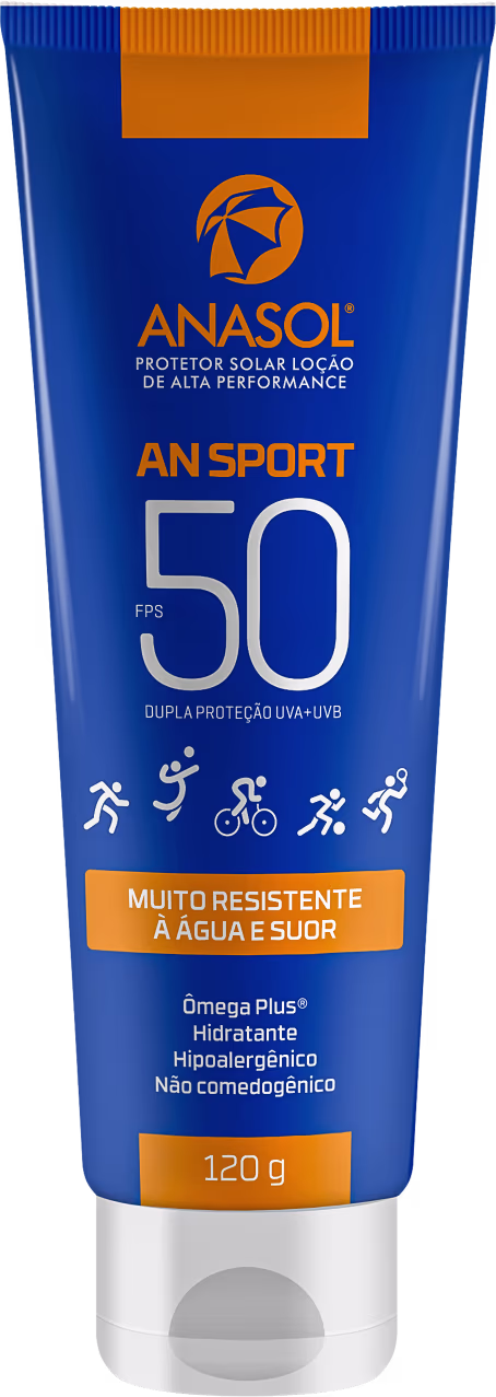 Protetor Solar Anasol AN Sport Loção FPS 50, perfeito para a prática de esportes. Melhores Protetores solares Anasol na BLZ Ver mais ❯