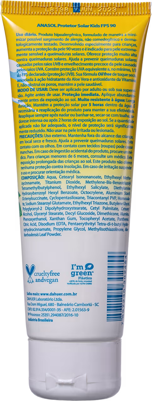 O Protetor Solar Infantil Anasol Kids FPS 90 tem fórmula hipoalergênica, especialmente desenvolvida para a pele delicada das crianças.