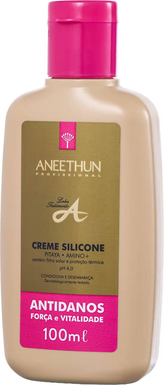 Creme capilar para cabelos danificados e quebradiços. Aneethun Linha A Silicone Antidanos revitaliza os fios, devolvendo-lhes a vitalidade e a beleza.