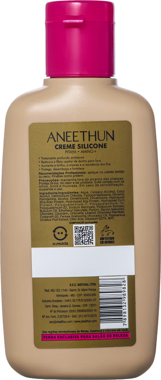 O Creme Capilar Aneethun Linha A Silicone Antidanos oferece uma fórmula inovadora, rica em Pitaya e Amino+, que proporciona reparação profunda, fortificação, hidratação intensa e proteção contra agressões externas, transformando os fios fragilizados em cabelos radiantes e saudáveis.