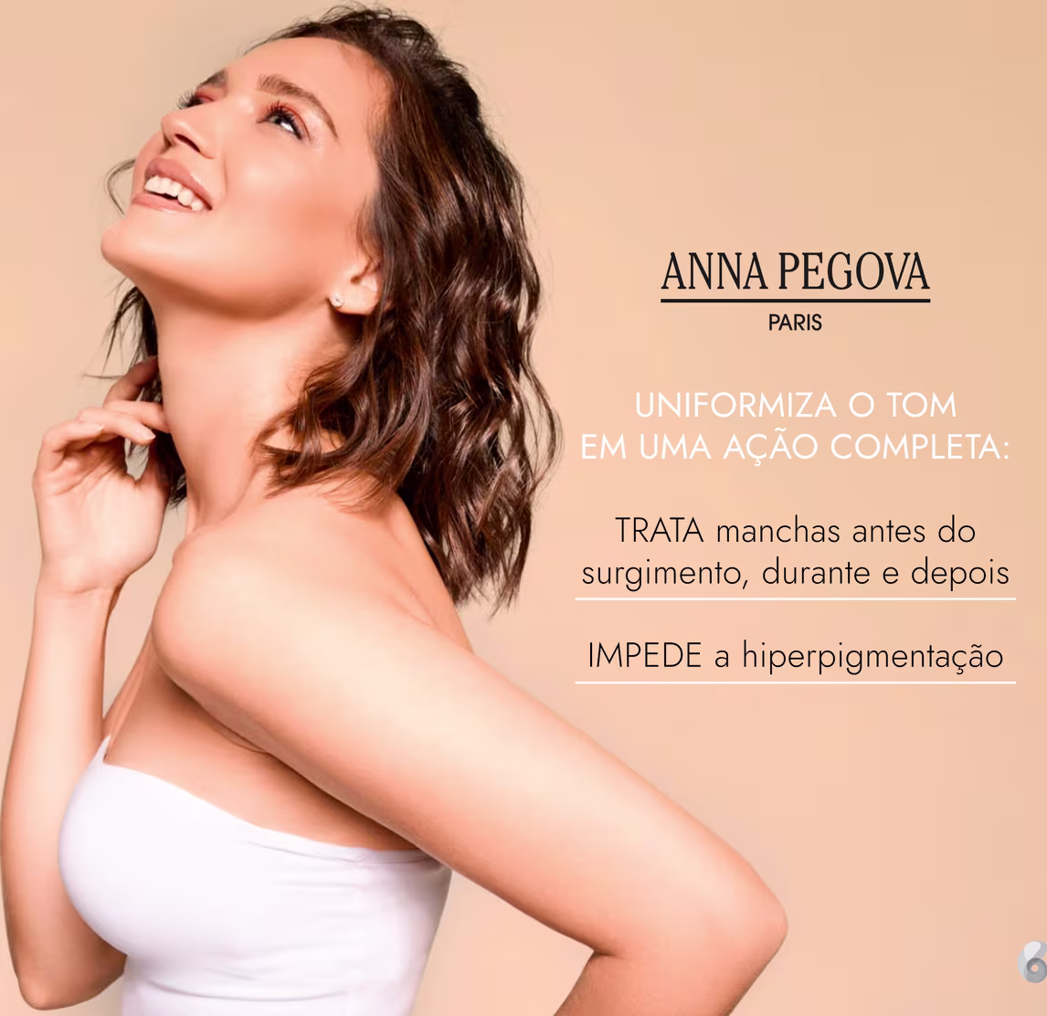 Sérum clareador de manchas. Anna Pegova Pegowhite Sérum Clareador uniformiza o tom com uma ação completa nos 3 mecanismos de formação de manchas: antes do surgimento, durante e depois. Assim, impede o aparecimento e o crescimento da hiperpigmentação, além de clarear a já existente. Pode ser usado no rosto, colo, dorso das mãos, axilas e virilhas.