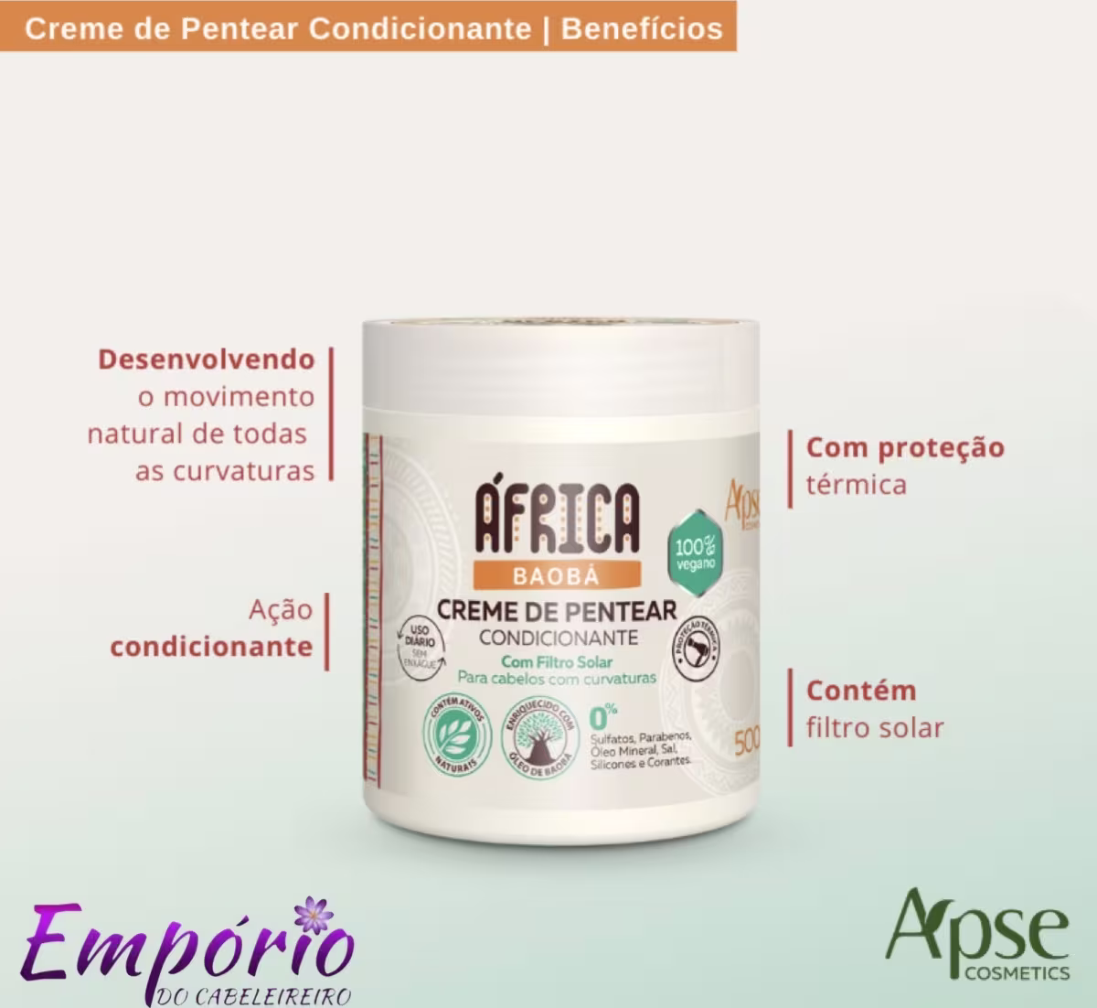 Creme de pentear para cabelos com curvaturas. Apse Cosmetics África Baobá confere um cuidado potente, garantindo maciez e definição.