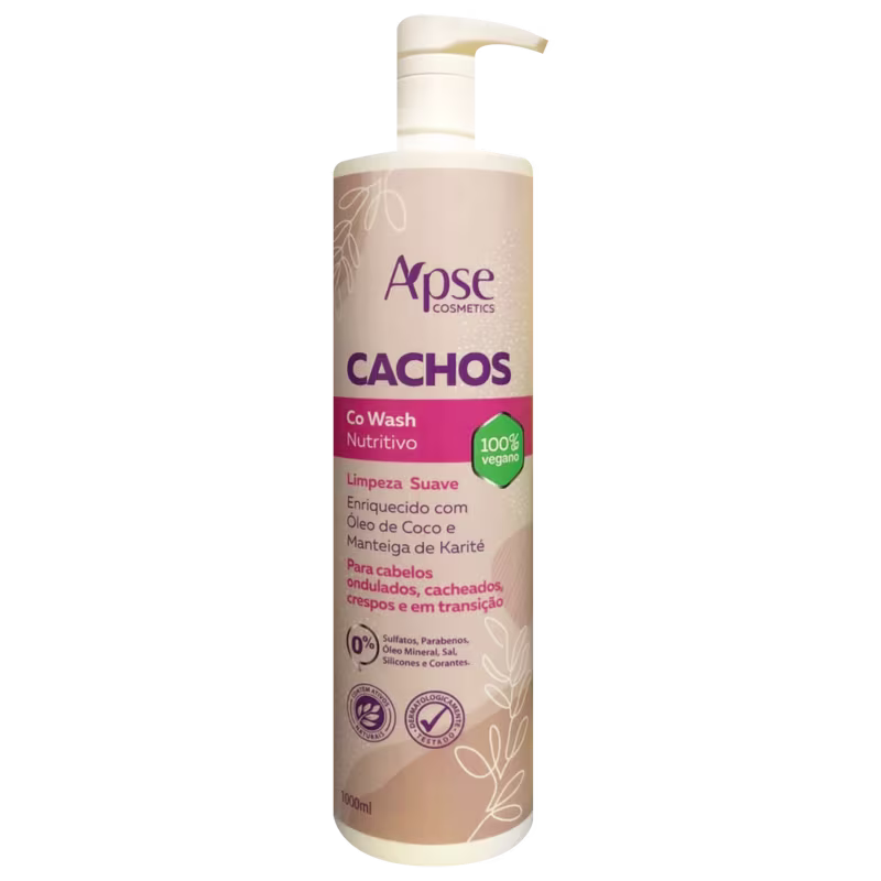 Co Wash nutritivo para cabelos ondulados, cacheados, crespos e em transição. Apse Cosmetics Cachos limpa o fio de maneira suave.
