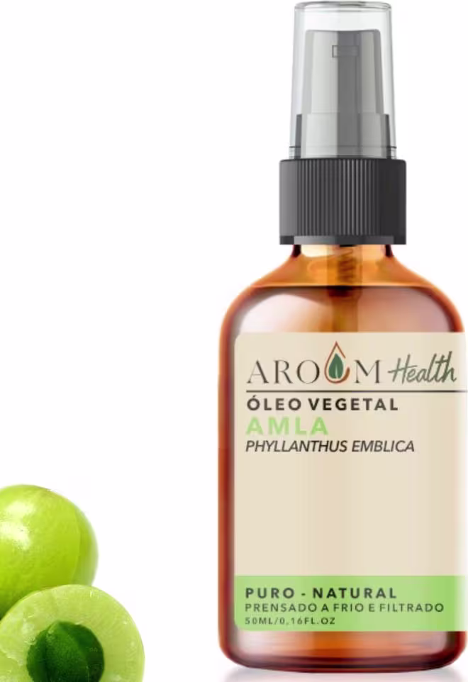 O Óleo Vegetal Aroom Aromaterapia Amla é uma fonte rica de vitamina C, ácidos graxos e antioxidantes, oferecendo benefícios excepcionais para cabelo e pele. Nos cuidados capilares, fortalece os folículos, reduzindo a quebra e a queda, estimula o crescimento saudável e combate a caspa e o ressecamento do couro cabeludo. Também melhora a textura dos fios, deixando-os brilhantes e macios. Para a pele, atua como antioxidante, protegendo contra os danos dos radicais livres, além de nutrir e hidratar, promovendo maciez e flexibilidade. É eficaz na redução de sinais de envelhecimento e no tratamento de acne e inflamações, tornando-se um aliado versátil para a beleza e o autocuidado.