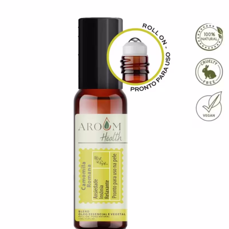 O Blend de Óleos Essenciais Roll-On Aroom Aromaterapia Camomila Romana combina propriedades calmantes, relaxantes e de cuidado com a pele em uma fórmula prática e pronta para uso. Conhecida por seu aroma suave e doce, a Camomila Romana auxilia no alívio do estresse e ansiedade, promove relaxamento e bem-estar, e oferece benefícios anti-inflamatórios, sendo ideal para acalmar irritações cutâneas e tratar condições como eczema e rosácea. Além disso, suas propriedades antissépticas e cicatrizantes ajudam na limpeza e regeneração da pele, tornando este blend perfeito para cuidar tanto do corpo quanto da mente.