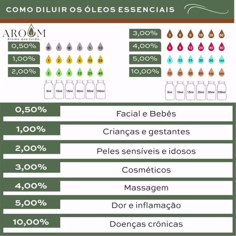 O Óleo Essencial Aroom estimula a vontade de se cuidar e se amar, além de aliviar o estresse e o estado de cansaço crônico. Além disso, combate o sono, preguiça e desânimo, já que a cafeína acelera o metabolismo do corpo e atua como termogênico natural. Também é ótimo para tratamento dos cabelos e couro cabeludo, ao reduzir a queda e estimular o crescimento dos fios.