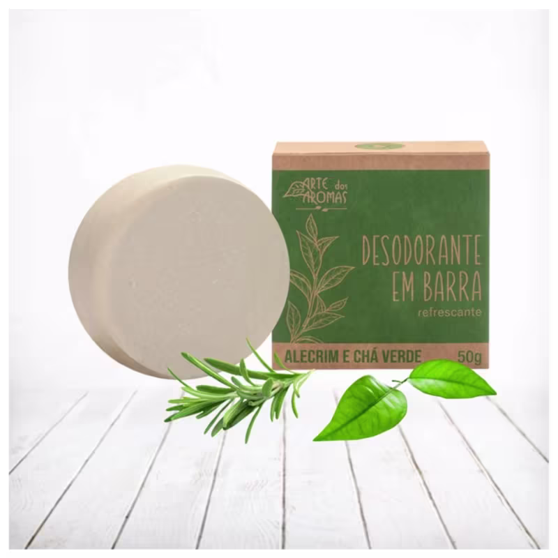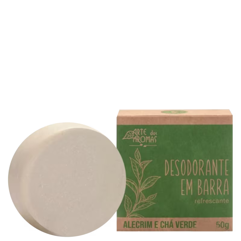 Desodorante em barra para todos os tipos de pele. Desodorante em Barra Arte dos Aromas Alecrim e Chá Verde ajuda a prevenir e neutralizar os maus odores da transpiração.
