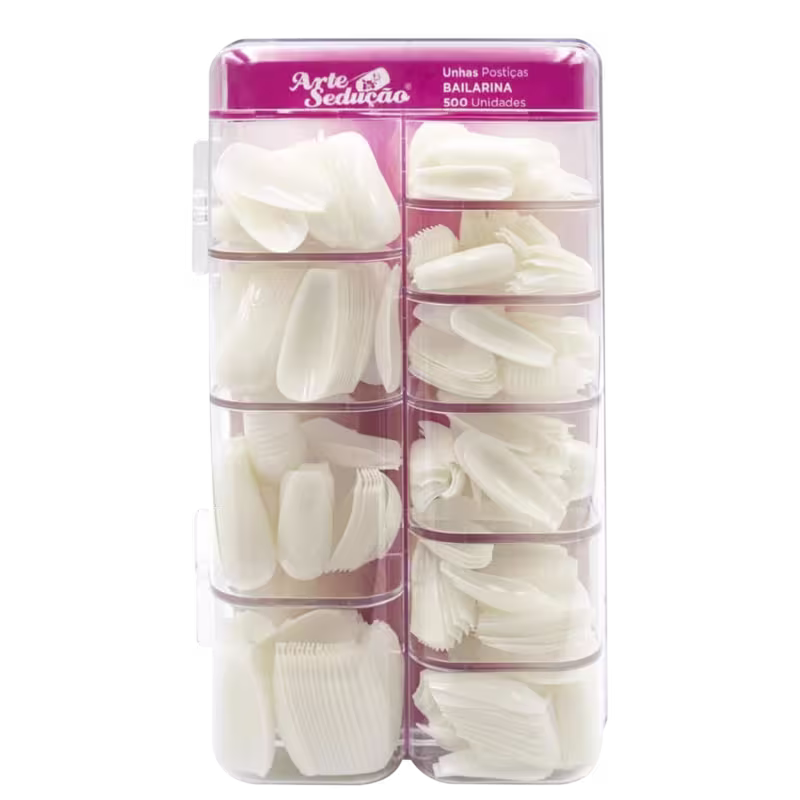 As Unhas Postiças Arte Sedução Bailarina levam esse nome por seu formato se assemelhar ao de uma sapatilha de bailarina, com as pontas afuniladas e lixadas de forma reta. Além disso, proporcionam o crescimento saudável da unha. Garantem esmaltação impecável e resultado que dura por mais tempo.