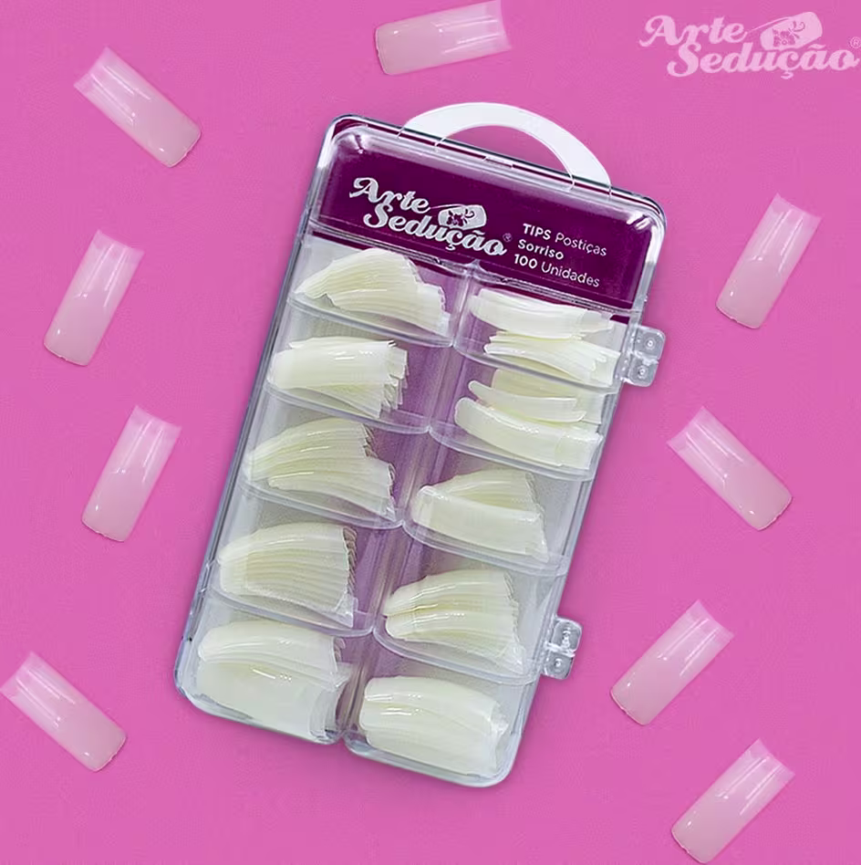 As Tips de Unhas Postiças Arte Sedução Sorriso são numeradas e possuem degrau para facilitar a aplicação e um acabamento incrível. Acompanha uma linda caixinha acrílica com divisões, perfeita para armazenamento e também para manter a organização. São ideias para uso profissional ou doméstico.