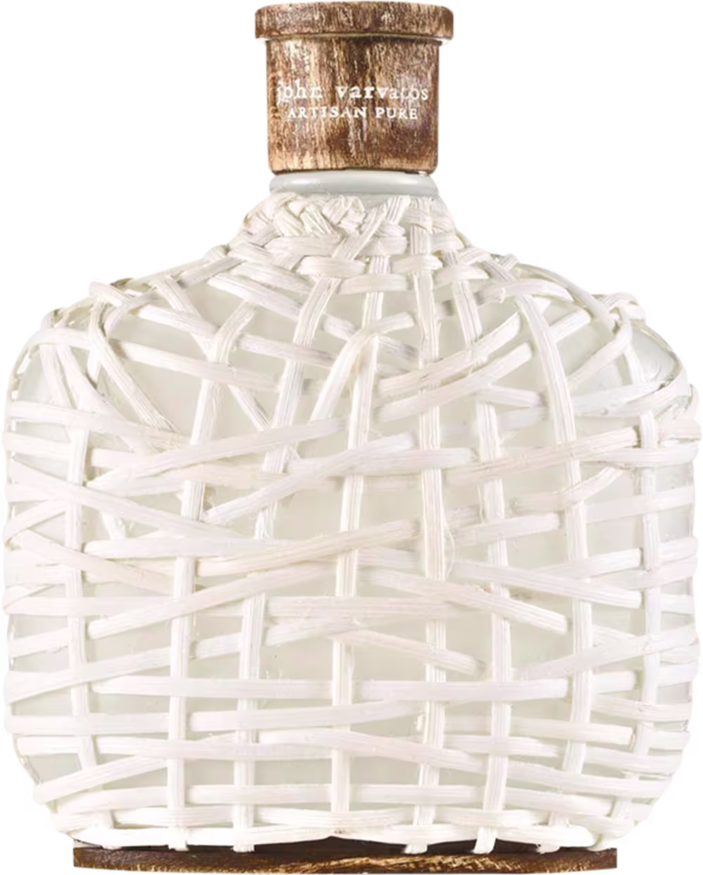 O frasco com o trabalho da trama branca, de Artisan Pure, guarda a preciosa essência em um design moderno e sofisticado.